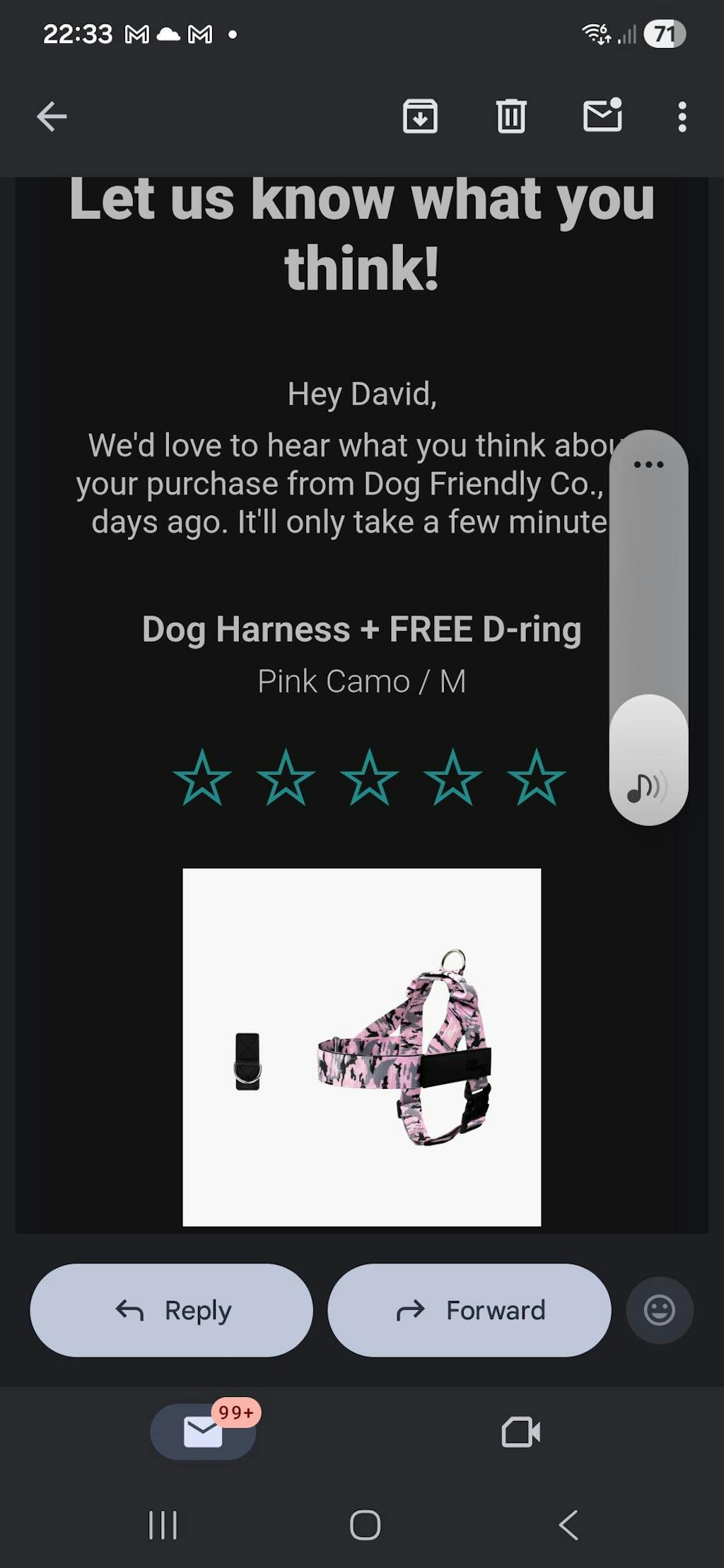 Really happy with the harness and lead, has helped immensely with my dog's pulling.